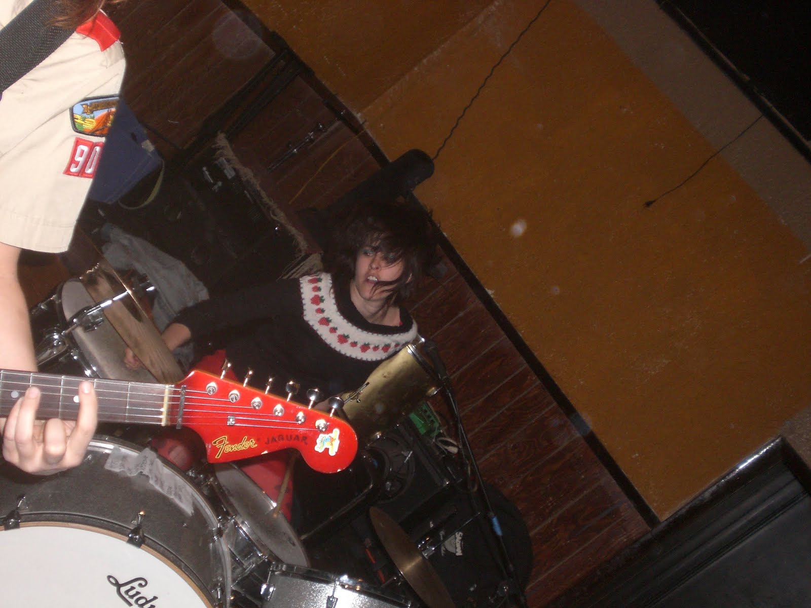 Venus plays guitar! Her comfort is in the keyboard. She used to be the exclusive voice, and now it's pretty much everyone. Their trip hop sound is relaxed and casual but alert like a boxer. Betrays no stress but is not boring. The two tangible CDs that are available from them are One Minute Fade, their latest. But they first appeared on my radar with Yellow House which they had for free. The title song and Noise are the songs that best display this relaxation that still build tension and interest in this tension. They are writing and performing new music. And did I say they are making Venus play guitar. When Venus hits the keys it's with no cathartic display. I've seen keyboardists that seem to still be working things out, hammering the keys or reading the stress on their faces. It's not like that with Venus. Yet songs like have that sneaky urgency of a faster assembly line. I've described other stuff as trip hop like Panda Riot but Moritat seem miles away from airy faerie shoegaze. What registers as trip hop does so cleanly away. Moritat feel more like creatures of this world, familiar. Another cool by-product is the bands you meet through .....the bands you met. A casual suggestion from Venus had me stay to see The Eternals! I always see Julie Meckler at Moritat shows. If Venus is on stage, Julie is on the floor. They support each other. Julie is all kinds of awesome. She performed and I was well and on time for that.